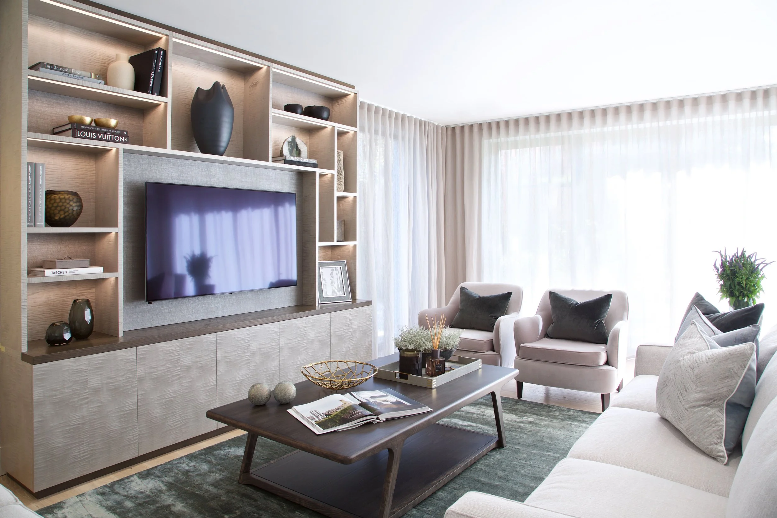 For this family townhouse, Rachel Winham Interior Design worked entirely remotely as the clients relocated from Dubai to London. As a new build property, the commission focused on decoration, bespoke joinery, and FF&E, transforming the blank canvas into a warm and layered family home. RWID managed procurement and installation in full, delivering a turnkey interior.