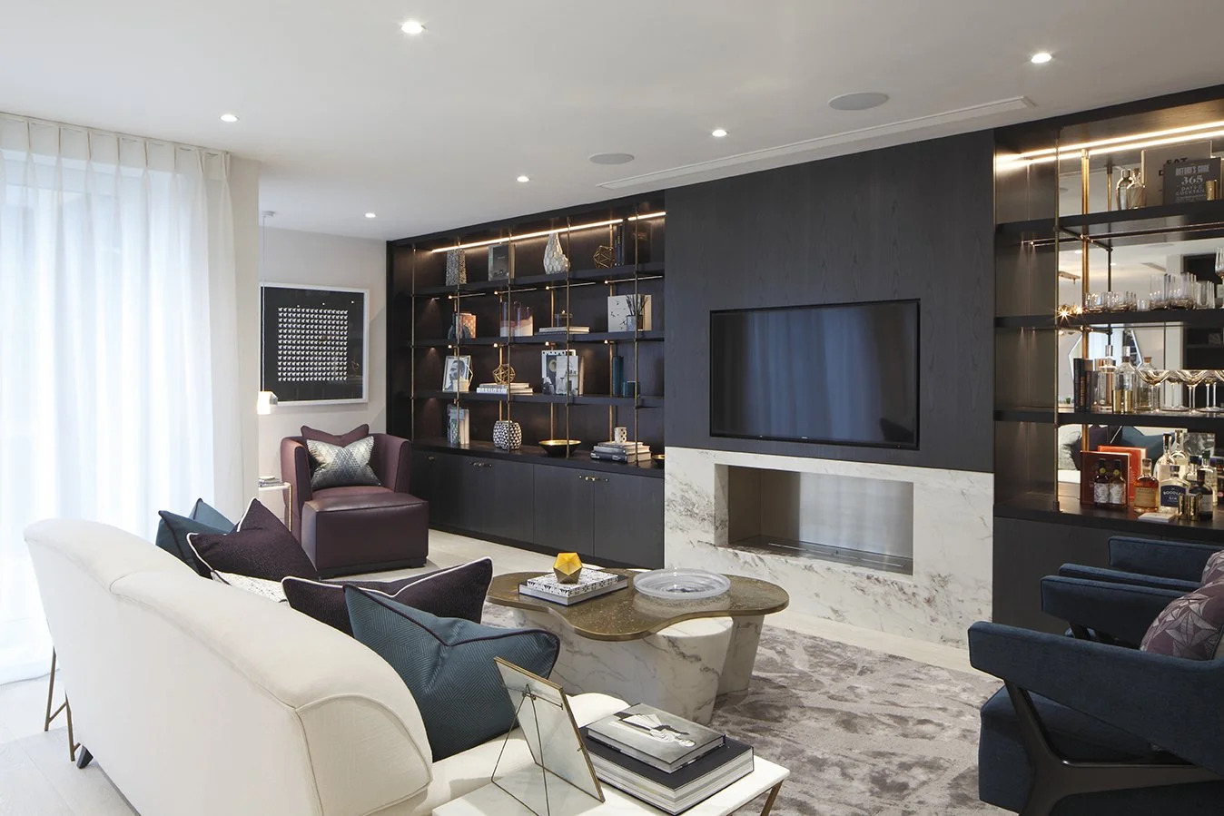 Barratt HomesA central Soho new-build show apartment. We provided decoration, joinery, FF&E, and full procurement and installation, creating a refined interior suited to this prestigious urban location.
